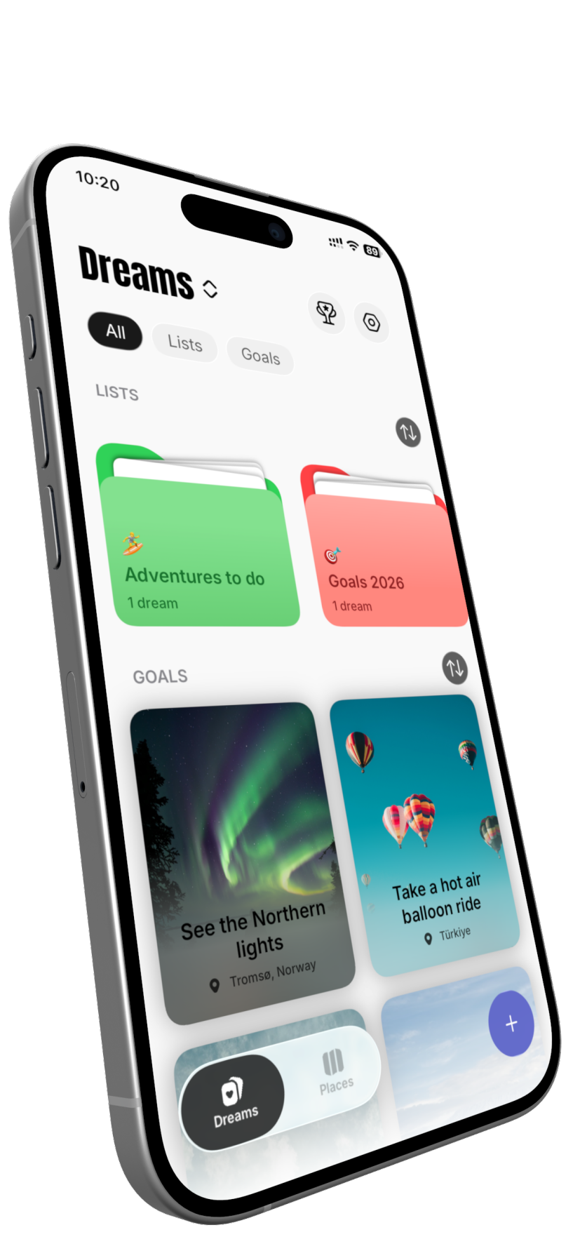 Group your dreams into custom lists so you can keep everything sorted by theme, trip, or life goal.